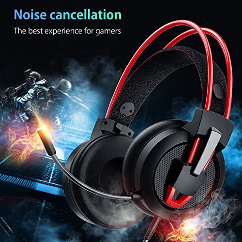 Jeecoo V20 Stereo Gaming Headset for PS4 PS5 Xbox One – Over Ear Headphones with Noise Cancelling Microphone – LED Light Soft Earmuffs for PC Laptops Mobiles