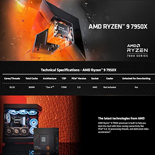AMD Ryzen 9 7950X 16-Core, 32-Thread Unlocked Desktop Processor,The best for creators and gamers, can deliver ultra-fast 100+ FPS ,Cooler not included, liquid cooler recommended