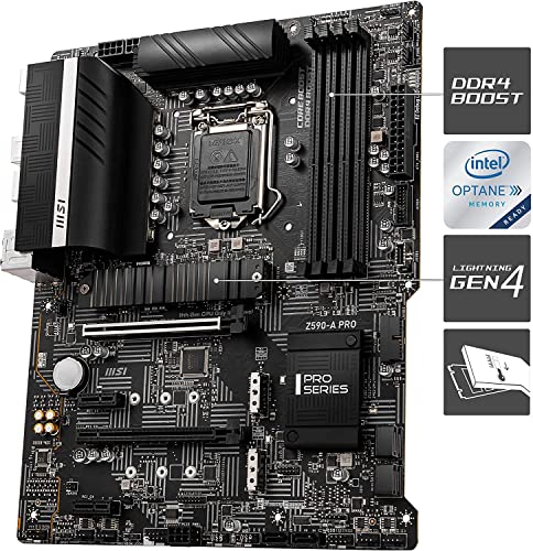 The MSI Z590-A PRO is a high-performance motherboard designed to provide users with an exceptional computing experience. It is powered by the latest 11th Gen Intel Core processors and supports DDR4 memory, providing lightning-fast speeds and exceptional reliability. This motherboard features the latest PCIe 4.0 interface, which enables it to achieve incredibly fast data transfer speeds of up to 16 GT/s. This is ideal for high-performance graphics cards and storage devices, ensuring that your system runs smoothly and efficiently. The MSI Z590-A PRO is built to last, with high-quality components and a durable design that can withstand even the toughest conditions. It features MSI’s Core Boost technology, which optimizes power delivery to the CPU for improved stability and performance. The motherboard also features a range of connectivity options, including USB 3.2 Gen 2×2 Type-C, Thunderbolt 4, and Wi-Fi 6E. This ensures that you can connect all your devices and peripherals easily, and enjoy fast and stable internet connectivity. The MSI Z590-A PRO also comes with a range of advanced features, such as MSI’s M.2 Shield Frozr, which ensures that your M.2 SSDs stay cool even under heavy loads. It also features a comprehensive set of tuning tools, allowing you to fine-tune your system for maximum performance. Overall, the MSI Z590-A PRO is an excellent choice for users who want a high-performance, reliable motherboard that can handle even the most demanding tasks. Whether you’re a gamer, a content creator, or a power user, this motherboard has everything you need to take your computing experience to the next level.