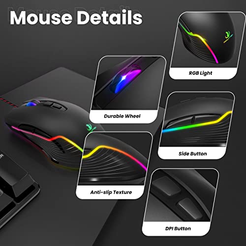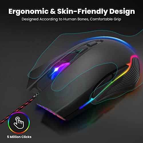 TECKNET Wired Gaming Mouse, RGB Mouse [Breathing RGB LED], Gaming Mouse USB [Plug Play], 7 Programmable Buttons, High-Precision Adjustable 6 DPI, Ergonomic Mouse Wired for Windows/PC/Mac/Laptop Gamer