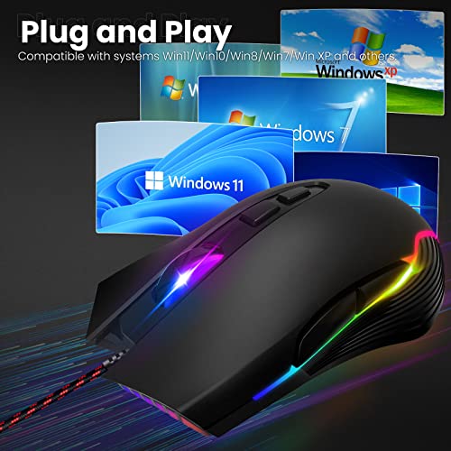 【Plug and Play】Gaming mouse is compatible with USB 2.0/3.0. Plug the USB into the device and use it, no need to install drivers. Gaming mouse compatible with most systems including Win11/Win10/Win8/Win7/Win XP and other systems.