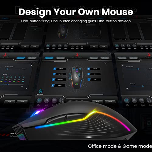 【Design Your Own Mouse】The gaming mouse has office mode and game mode. The button functions can be customized to provide you with the greatest convenience at work or in games. Convenient functions such as one-button firing, one-button changing guns, and one-button desktop can be set. Smooth scroll wheel is solid and durable, providing a unique feel.