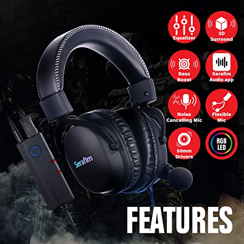 Serafim A1 Gaming Headset with Exclusive Equalizer Detachable Mic Bass Boost 3D Surround Sound for PC Xbox One Series X|S PS5 PS4 Nintendo Switch Mac iPhone Mobile 3.5mm Jack – Wired Black