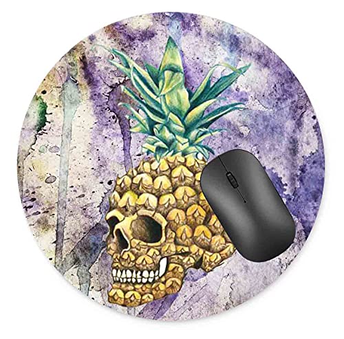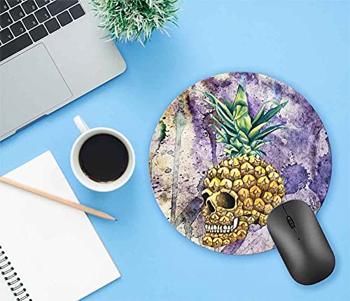 Home Mouse Watercolor Pineapple Skull Round Mouse Pad,Anti Slip Rubber Round Mousepads Desktops Gaming Mouse Mat Customized Designed for Home and Office,7.9 x 7.9inches