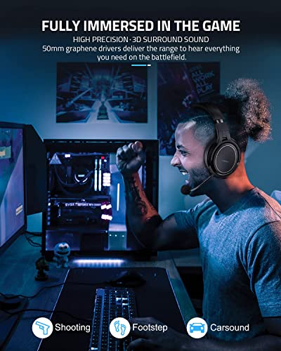 ✅【Noise Canceling Anti-Static Microphone】PC gaming headset with microphone can be placed in the most suitable position to ensure the clearest voice pickup, and filter out ambient noise and eliminate static electricity.Noise cancelling wireless headset with microphones allow for real-time chat in-game without lag, making it easier to communicate with teammates, friends and family without unnecessary interruptions.